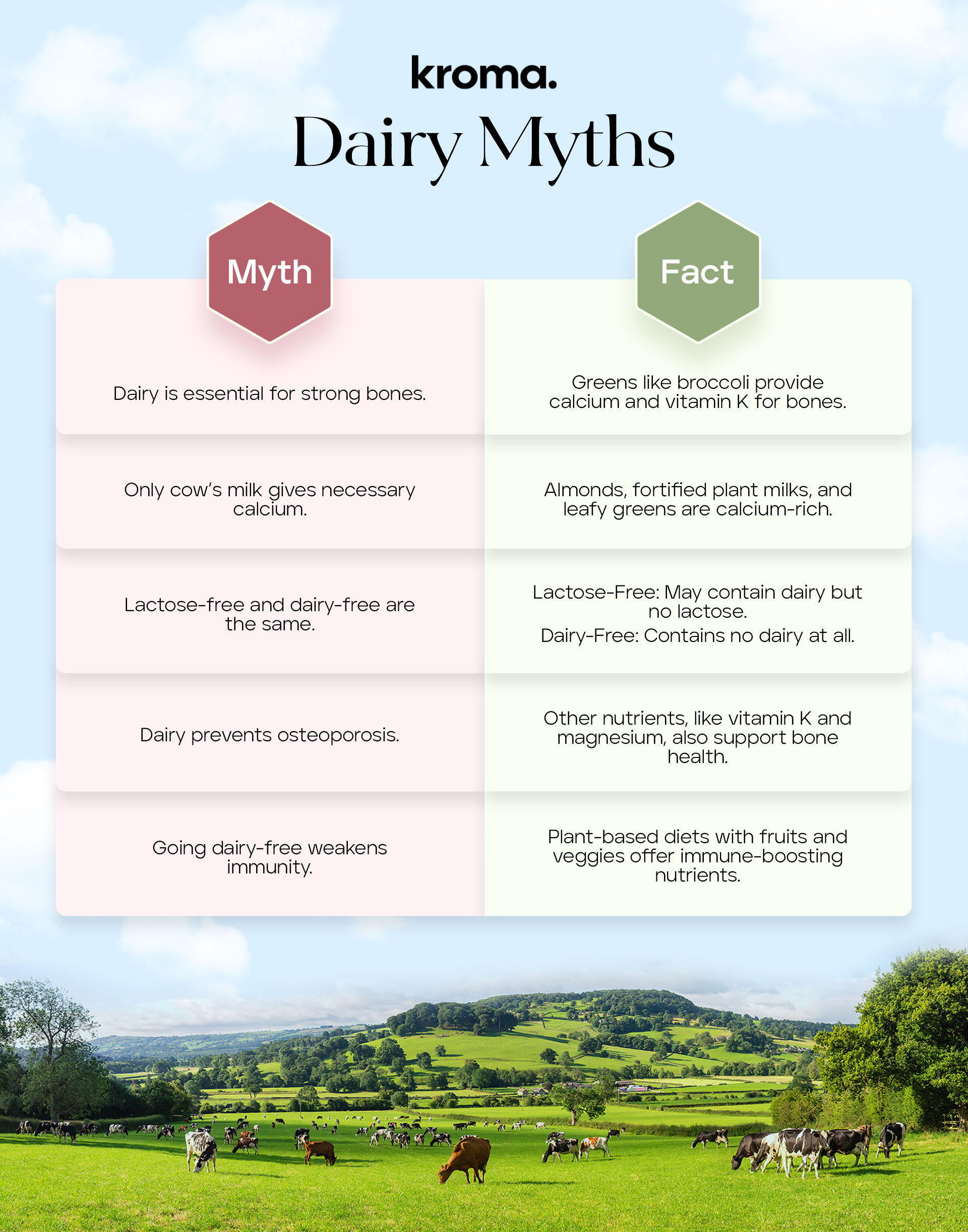 The bottom line is that many people don’t eat dairy products, whether that’s from allergies, intolerances, or by choice. Having a well-balanced diet full of nuts, fruits, and vegetables will combat any calcium deficiencies that could arise.