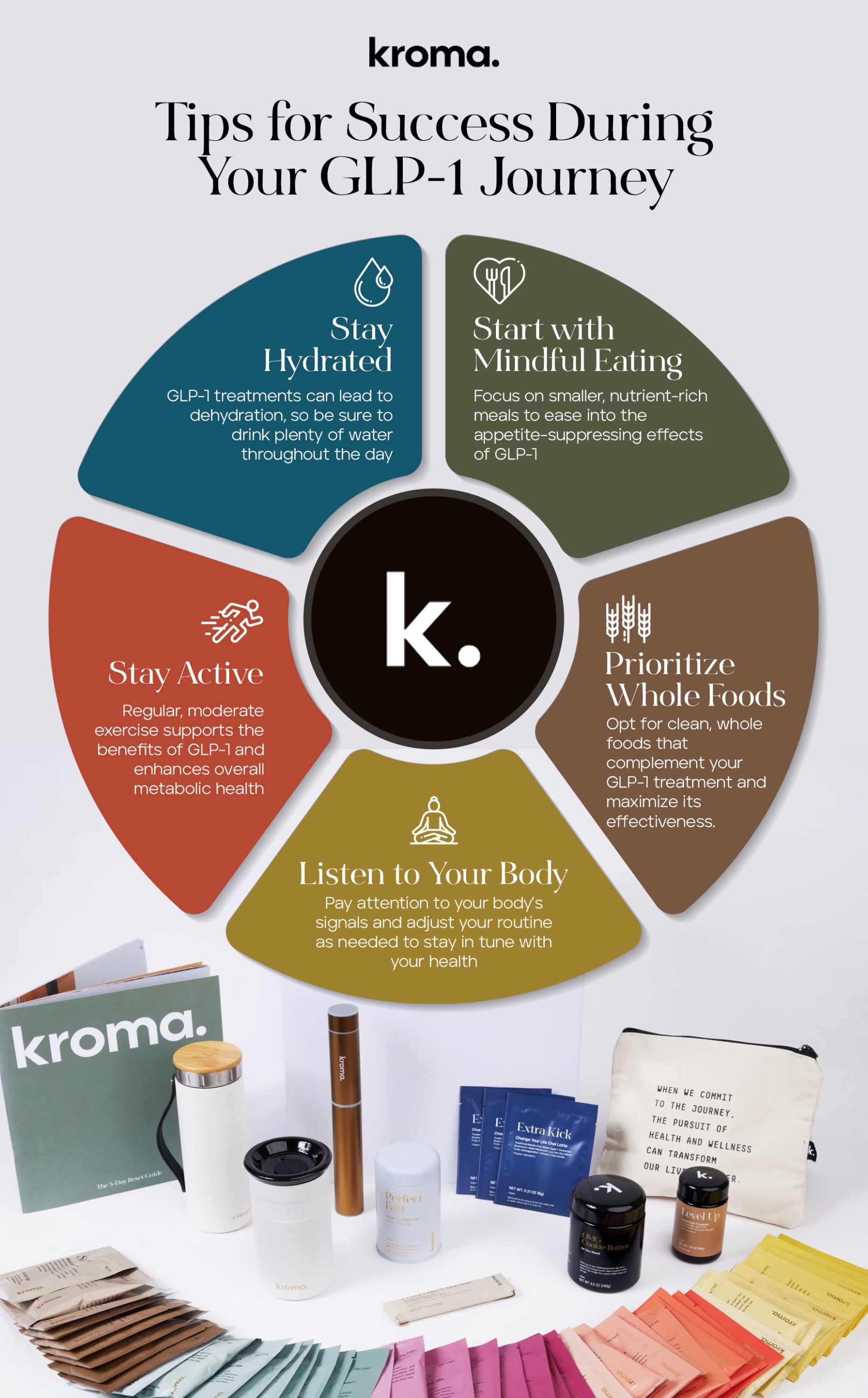 Are you ready to take the first step? Kroma's 5-Day Reset is designed to support your wellness goals with nutrient-rich products and easy-to-follow guidelines. Whether you're preparing for a GLP-1 treatment or just looking to make a fresh start, the Reset is your perfect partner.